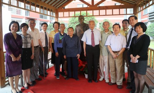 中国工程院院士、原震旦大学校友、终身博士生导师、我院名誉院长王振义教授(右六)为我院马相伯像揭幕