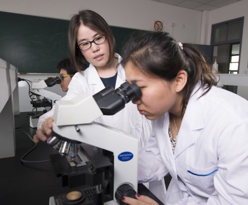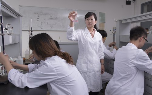 营养与食品卫生专业学生在实验室,进行检测实训操作