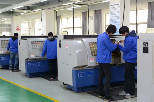 机电、数控专业学生在校内机电实训室,实践操作机床设备