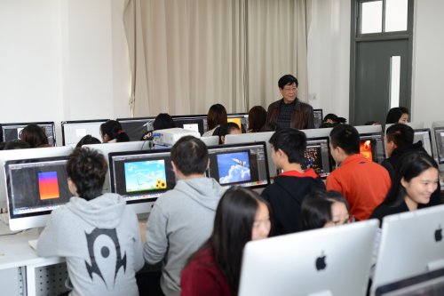 新闻专业学生在图文编辑实训室(苹果机房)实训