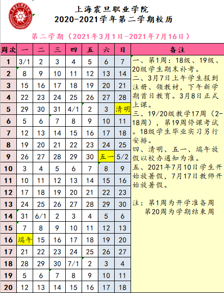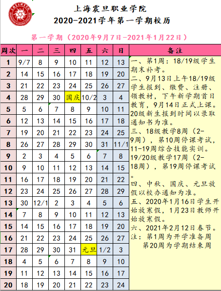 2020—2021学年校历